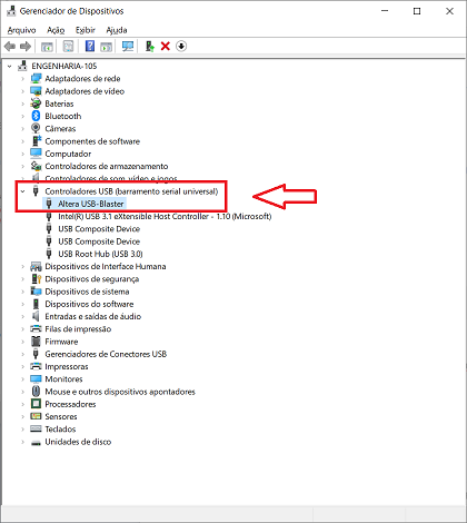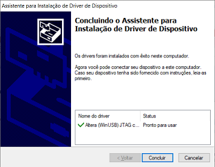 - Aguarde a instalação do drive e o USB-Blaster agora deverá aparecer como Altera USB-Blaster, conforme a imagem abaixo: