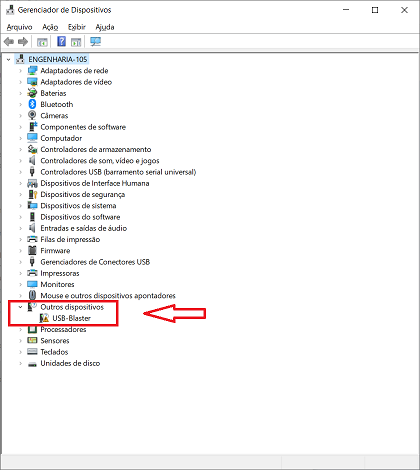 - Conecte a placa e o driver USB-Blaster será reconhecido da seguinte maneira: