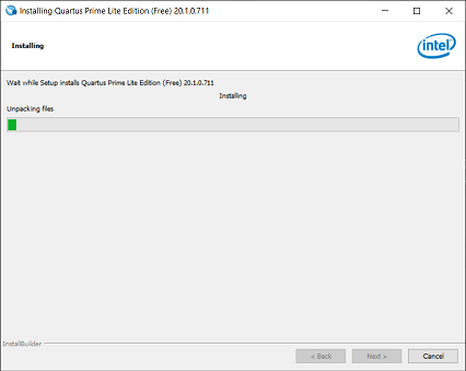 - Execute o arquivo QuartusLiteSetup-20.1.0.711-windows.exe e clique Next até a instalação iniciar: