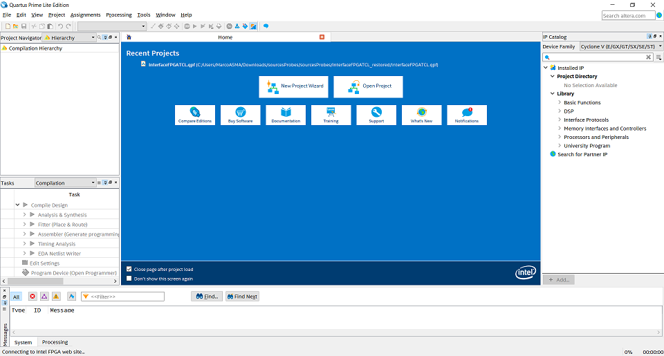 - Execute o Quartus (Quartus (Quartus Prime 20.1) Lite Edition), esse ícone deverá estar na sua área de trabalho: